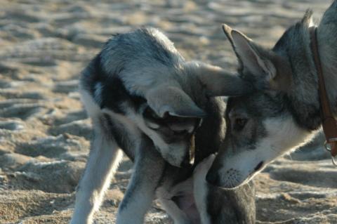 Hallo Ihr Lieben, hier ein paar Bilder von Snowbird & natürlich auch von Moonlight. Die beiden sind ein super Team und machen mir nur Freude. Snowbird ist mitten im Zahnen und hat aber keine großen Probleme damit... er betätigt sich allerdings gerne als Biber bei jeder Art von Zweigen usw. Ansonsten tobt er gerne mit den Großen... bei anderen welpen hält er sich eher zurück... es sei denn die sind noch größer und wilder als er :) Beim Fressen ist er eher wählerisch... aber bei Hundewurst (als Leckerchen draussen) geht er voll ab... da kann er springen wie ein Känguru um möglichst schnell ranzukommen. Ich kann nur immer wieder DANKE sagen... ich habe die besten Hunde der Welt von Euch bekommen! Ganz liebe Grüße und auf ein baldiges Wiedersehen Eure Kathrin, Moonlight & SnowbirdEintrag 02