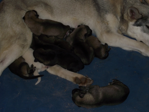 Im Zwinger Lupus Amans wurden 6 wildfarbene/graue Rüden mit dunklen Masken 1 weißer Rüde 2 wolfsgraue Mädels mit dunkler Maske 1 Mädchen war zu schwach und ist leider verstorben