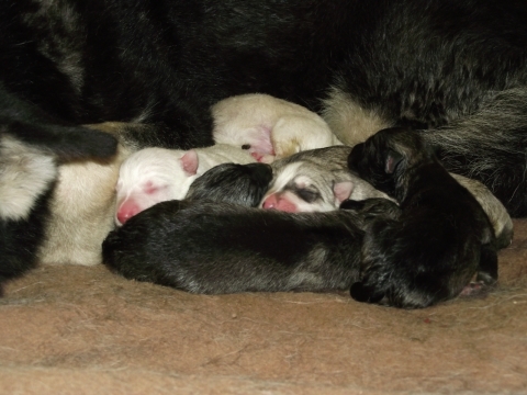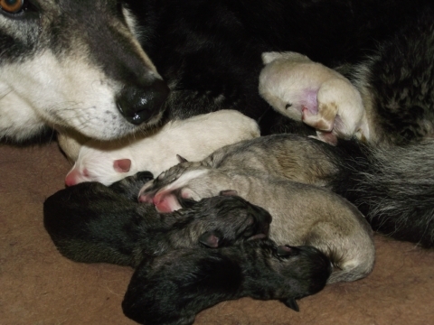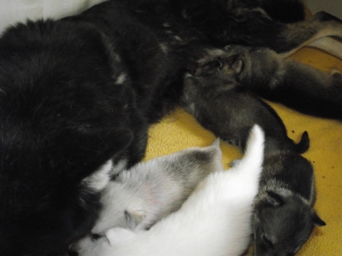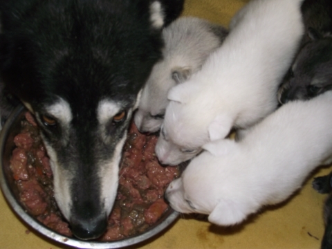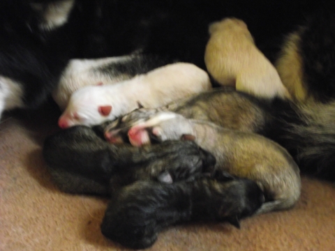 Es sind 9 Welpen 1 Weißes Mädchen 1 Weißer Rüde 2 Silberne Rüden 5 Wolfsgraue Rüden mit Maske