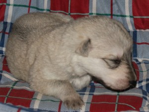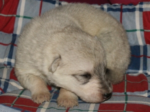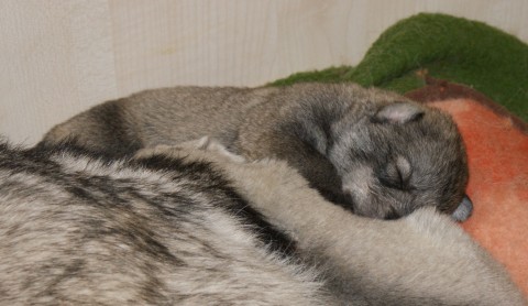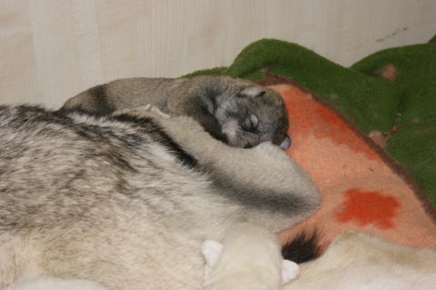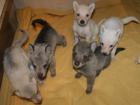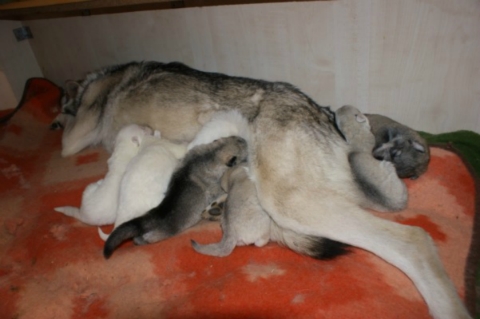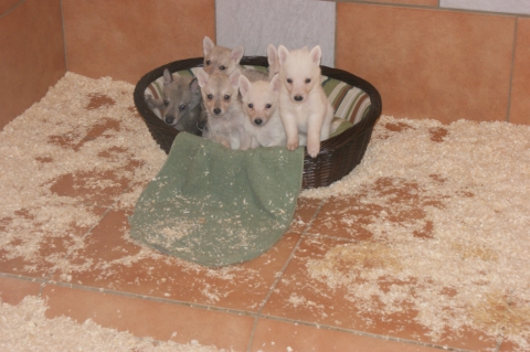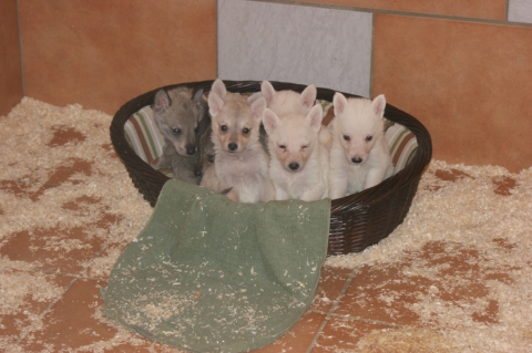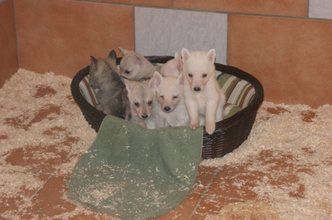 Es sind 2 Weiße Mädchen 1 Weißer Rüde 2 silbergraue Mädchen 2 wolfsgraue Rüden auf die Welt gekommen